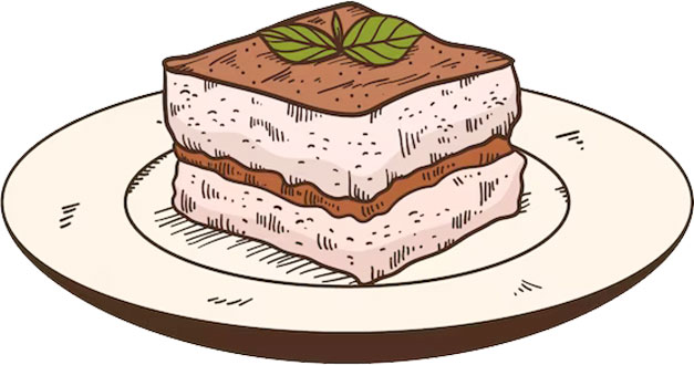 Coffee-soaked almond sponge cake layered with liquor-flavored mascarpone, dusted