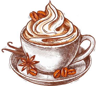 Espresso, blended with steamed milk and white chocolate sauce, whipped cream.